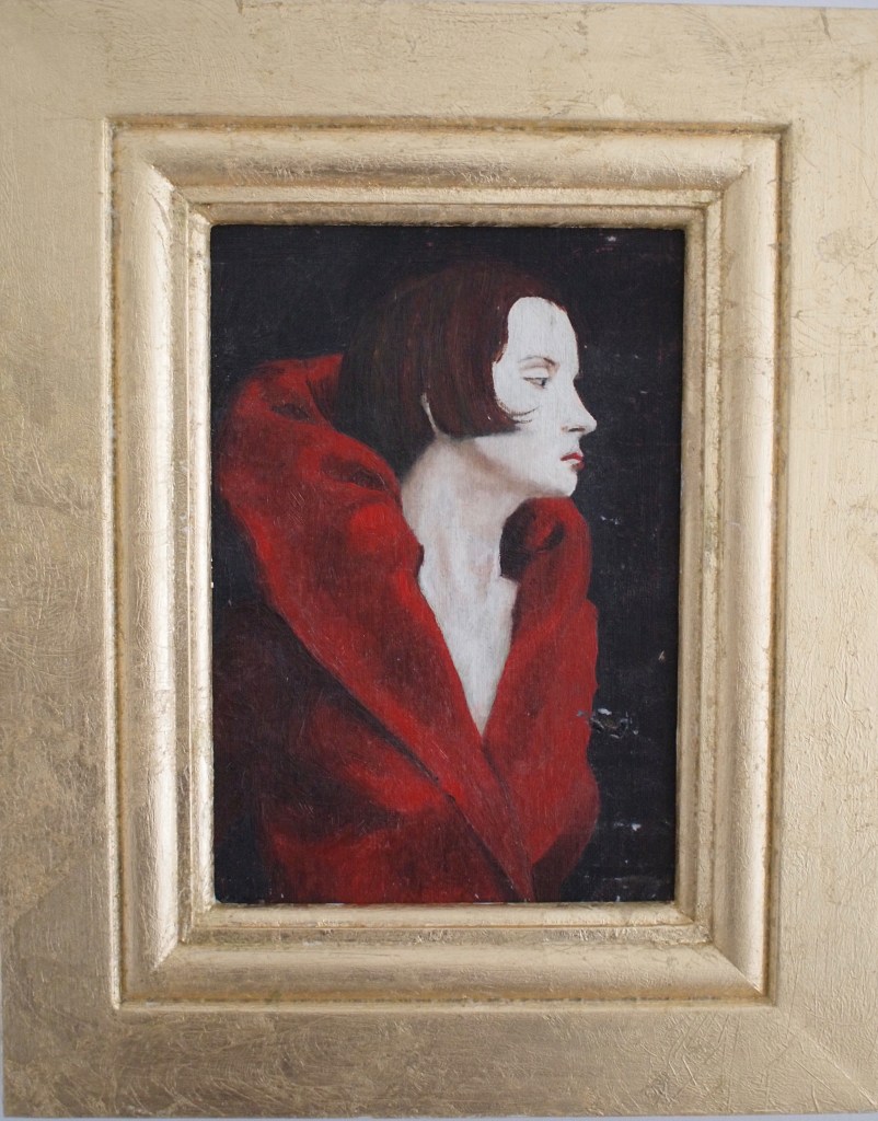2016. Oil, gilding and paper on panel. Framed. (200mm x 250mm). £500